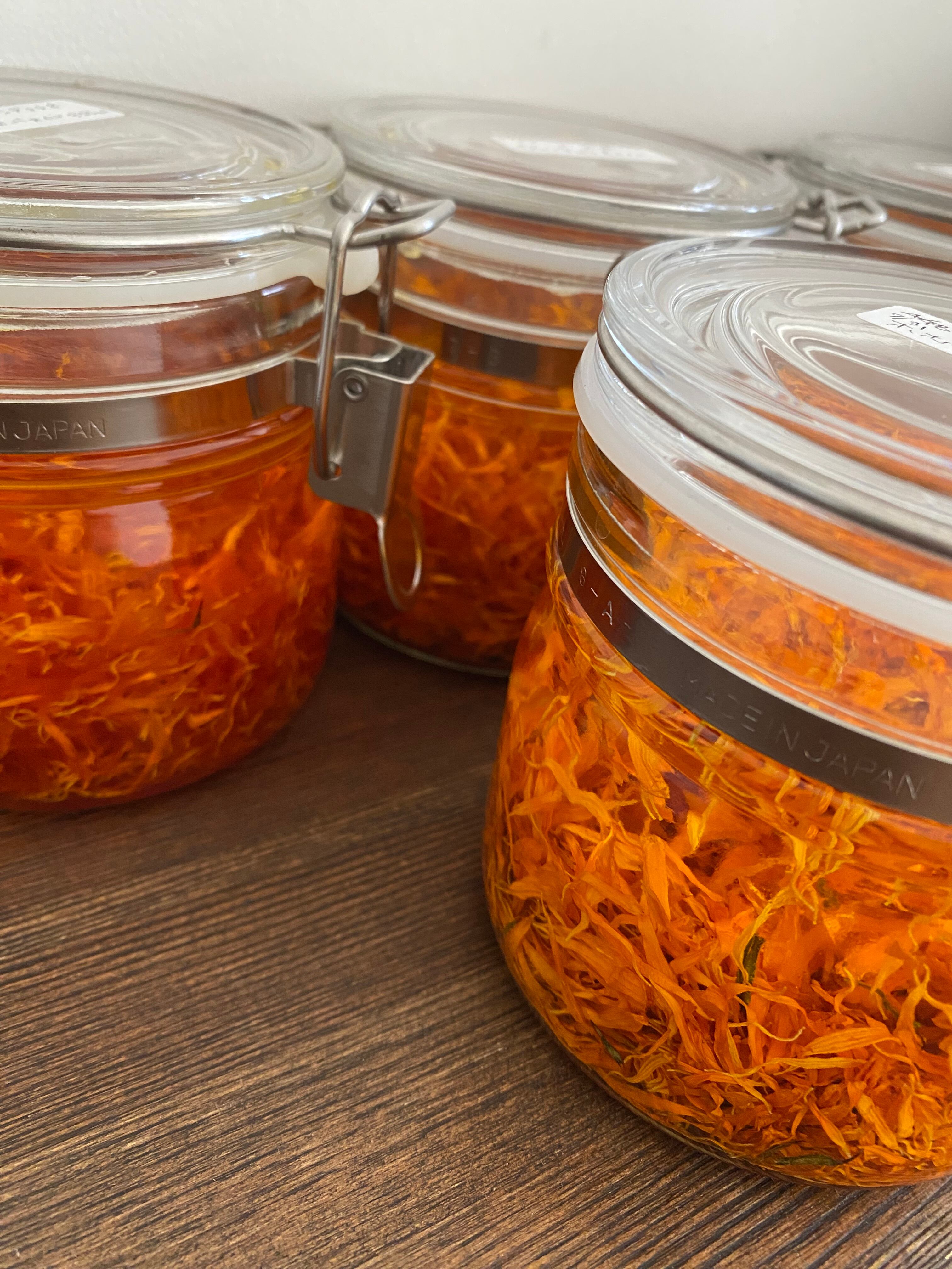 カレンデュラ花、ホホバオイルのみ香りなどはつけていませんナチュラルな植物の恵みを感じてみてください